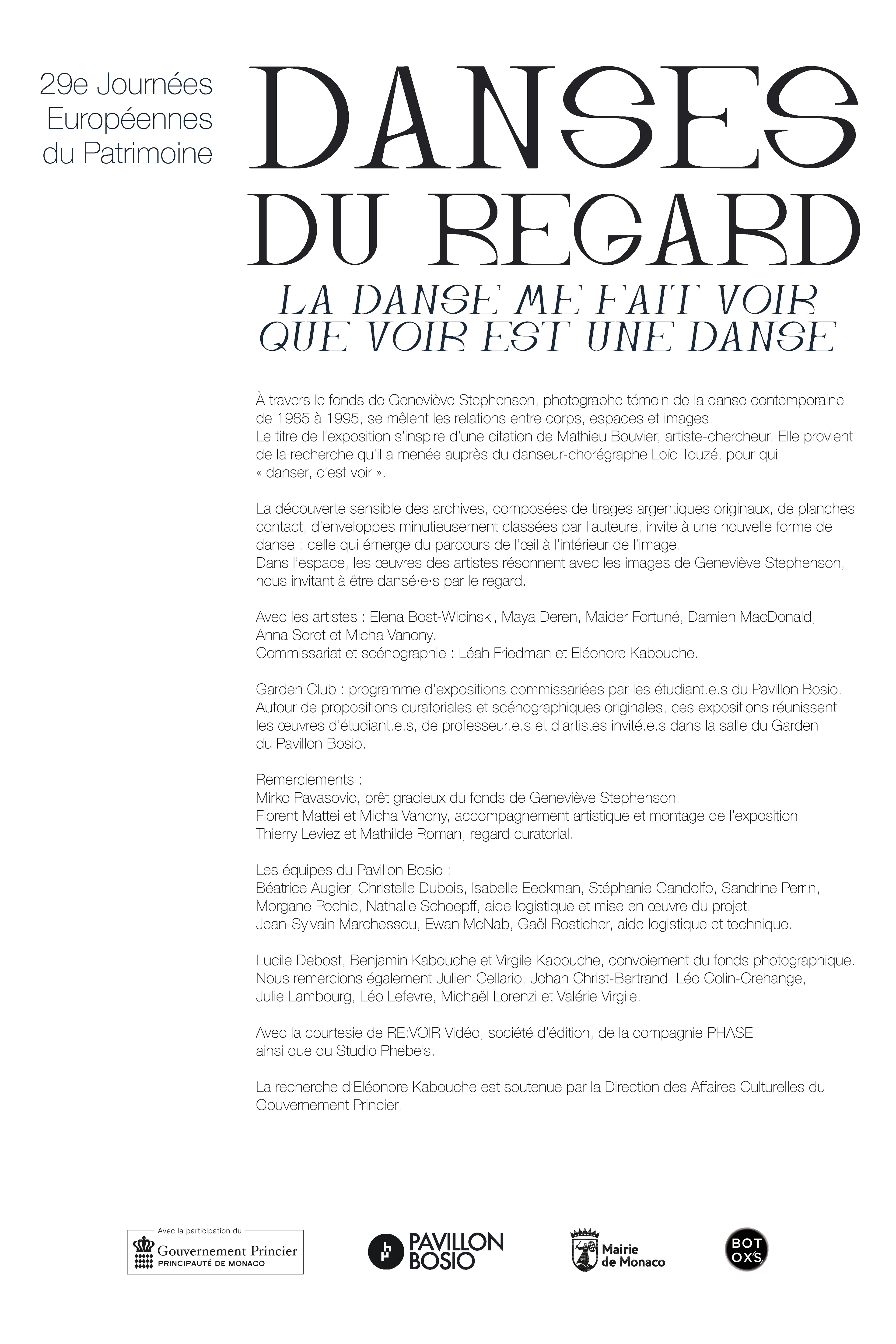 ✳︎ La danse me fait voir que voir est une danse ✳︎ Le titre de l’exposition s’inspire d’une recherche chorégraphique menée par Loïc Touzé et Mathieu Bouvier. Avec les artistes : Elena Bost-Wicinski, Maya Deren, Maïder Fortuné, Damien MacDonald, Anna Soret, Geneviève Stephenson, Micha Vanony. Commissariat et scénographie : Léah Friedman et Eléonore Kabouche. Accompagnement artistique : Florent Mattei et Micha Vanony